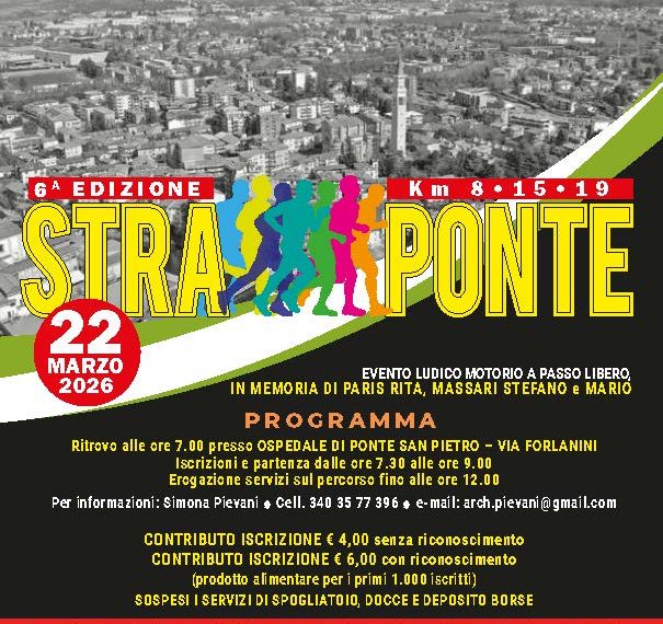 Domenica 22 marzo 2026 torna la Straponte, la camminata non competitiva giunta alla sua sesta edizione, appuntamento ormai consolidato per il territorio e occasione di incontro all’insegna dello sport e della condivisione.